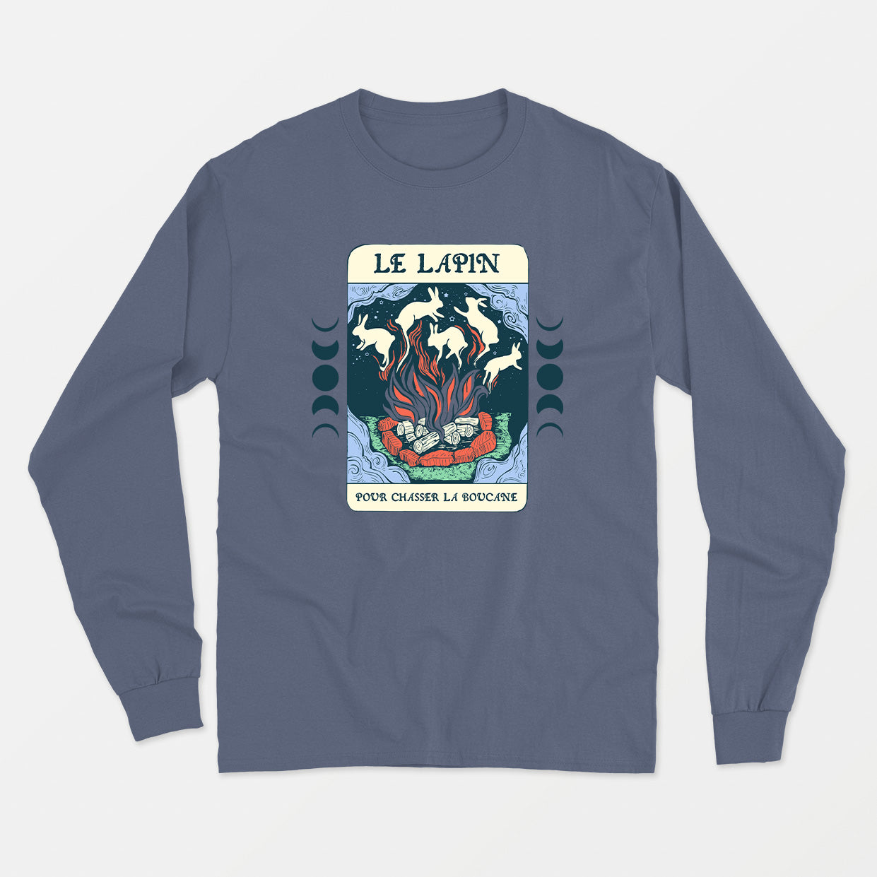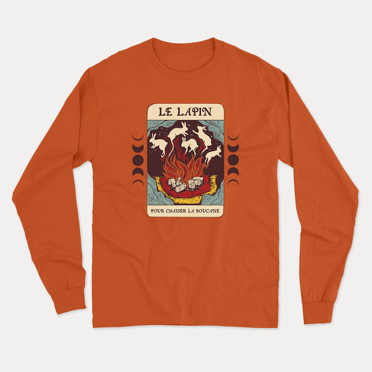Tribute to the famous incantation RABBIT RABBIT used around campfires to keep away the smoke (which always comes back). There is a nod to the famous Tarot Cards, used since the 15th century in the art of divination.