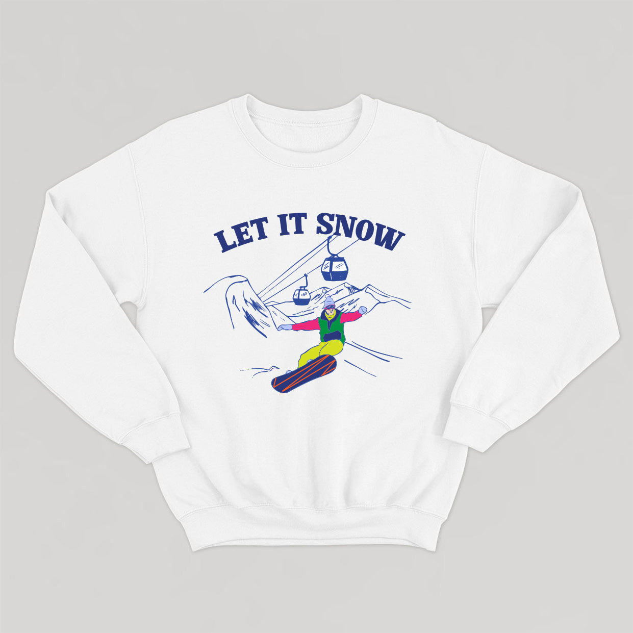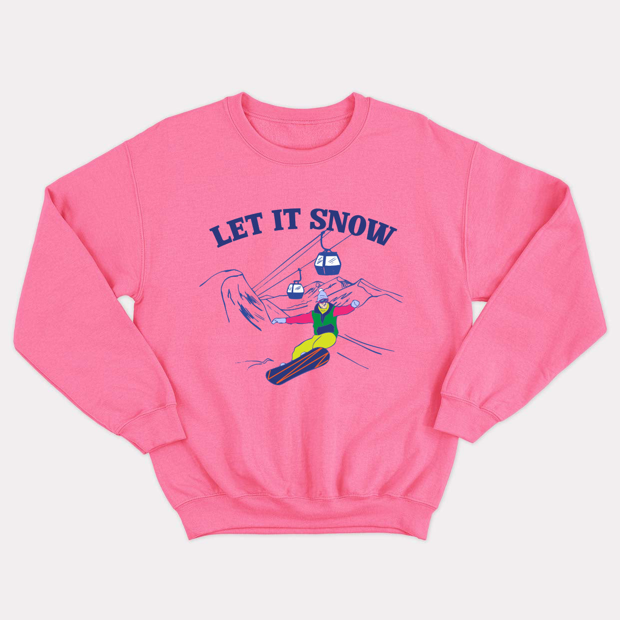 Proudly display your love of snowboarding and après-ski with this vintage-look crewneck with neon accents. You'll love spending the cold season warm and cozy in a cozy retro sweatshirt. An ideal crewneck for snowboarders and lovers of chalets, fireplaces and hot drinks. It's all the rage on and off the slopes.