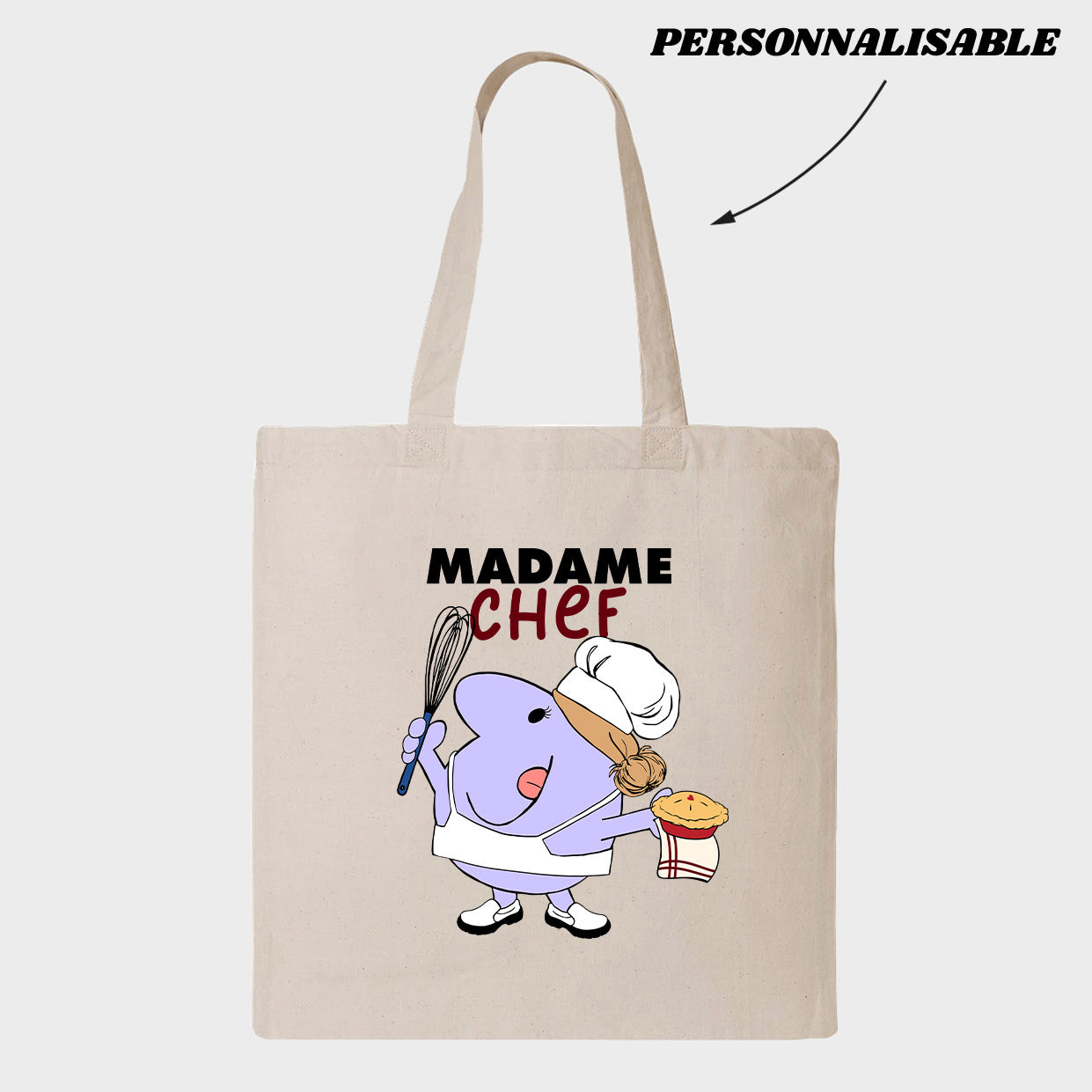 Customize your order by indicating in the comments what title you would like to give to your LITTLE MISS . Note that the customizable section is only the word CHEF, the MADAME section and the drawing are fixed.