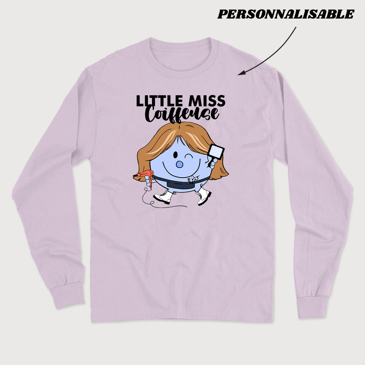 Personnalisez votre commande en indiquant en commentaire quel titre vous souhaitez donner à votre Little Miss. À noter que la section personnalisable est uniquement le mot COIFFEUSE. la section LITTLE MISS et le dessin sont fixes.